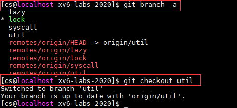 每个实验项目都在不同的分支上完成,请 注意切换分支 ,例如,实验一需切换到util分支后进行开发: