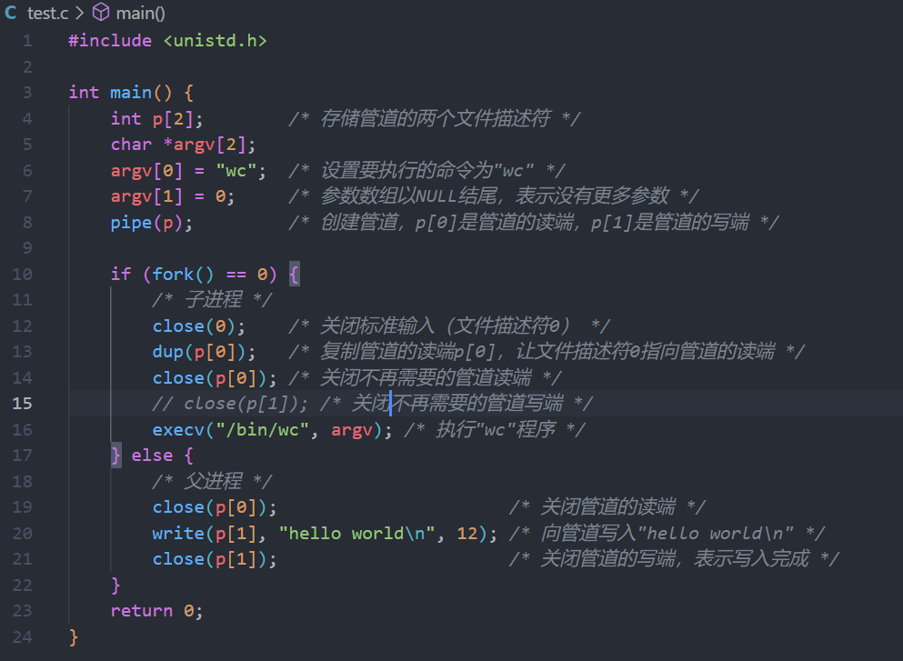 wc命令的示例程序,假设子进程没有关闭管道写端,在Linux环境下编译运行后执行ps指令,我们发现会多一个永不结束的wc进程,为什么会有如下结果?