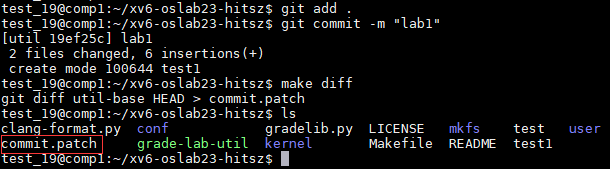 git diff util-base-24 HEAD -- . ':!commit.patch' > commit.patch代替原来的make diff指令重新生成commit.patch,回到如何检验提交上去的commit.patch文件是否正确的第一步