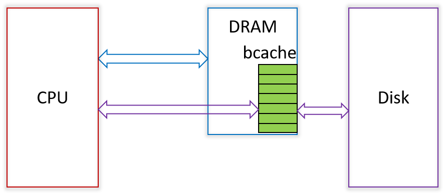 xv6的文件系统是以磁盘数据块为单位从磁盘读写数据的。由于对磁盘的读取非常慢,而内存的速度要快得多,因此将最近经常访问的磁盘块缓存在内存里可以大大提升性能(此时内存起到cache的作用)。Buffer Cache(也称为bcache)就担任了磁盘缓存一职,它是磁盘与文件系统交互的中间层。