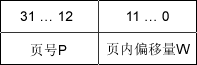 地址结构: 分页存储管理的逻辑地址结构如图前一部分为页号P,后一部分为页内偏移量W。32位机器图示如下(xv6是64位操作系统)。