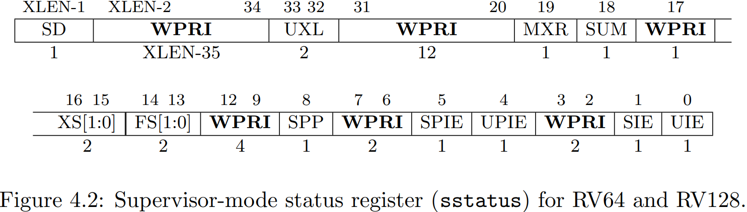 sstatus寄存器,如果该寄存器的SUM位(第18位)置为1,那么内核也可以直接访问上述的虚拟地址。大多情况下,该位需要置0。(访问寄存器的函数定义于riscv.h)关于sstatus寄存器,可以查阅riscv-privileged-20211203.pdf 4.1小节。