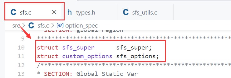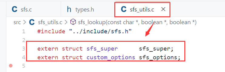 如何对全局变量,如sfs_super和sfs_options(以simplefs为例),进行跨文件使用?答案是借助好extern关键字(在xv6 lab2 syscall实验应该已经接触过它)。
