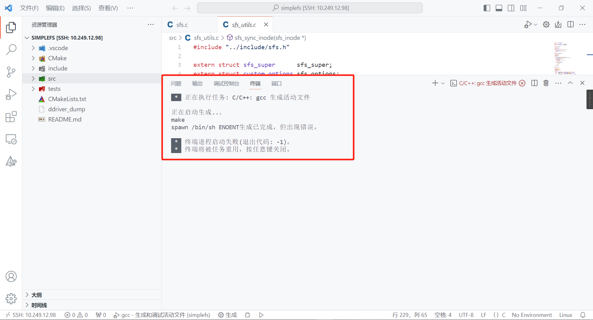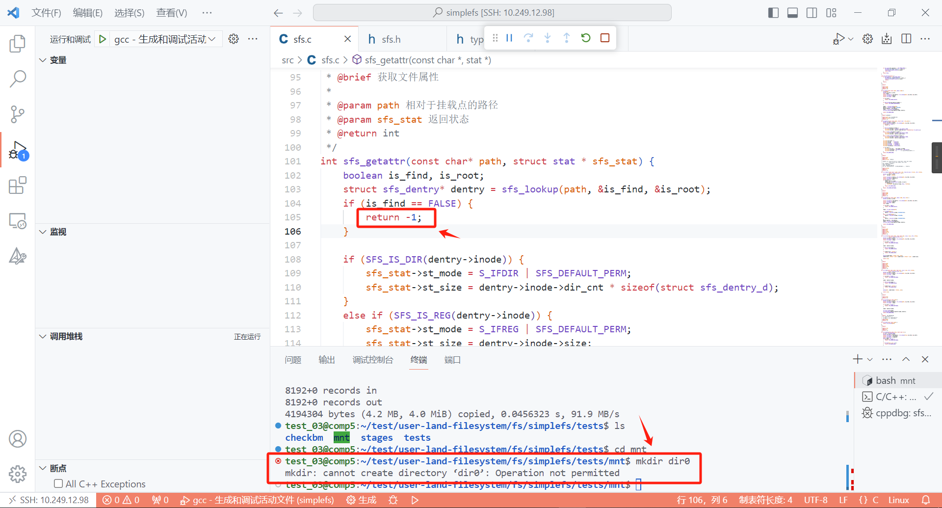 这个问题包括任务一和任务二,上图以simplefs为例展示。