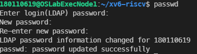 此时,它会要求你输入旧密码。旧密码(即默认密码)为你的学号。完成后回车。 随后,它会要求你输入新密码,并进行确认。